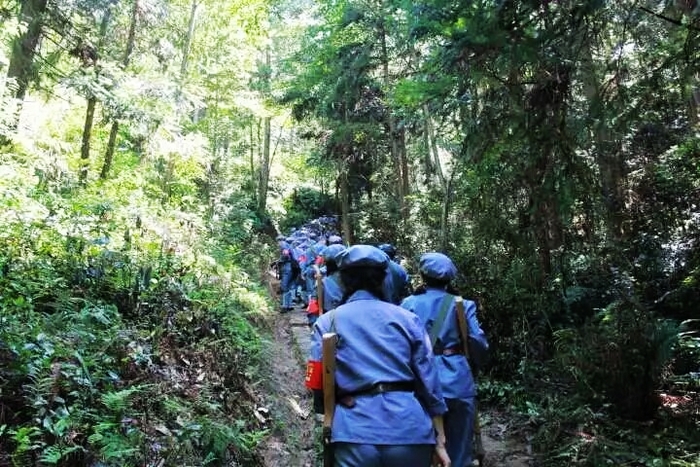 “红米饭,南瓜汤,秋茄子,味道香……”“金丝被那个盖身上……”嘹亮的红歌声中,学员们感受到革命乐观主义的力量。