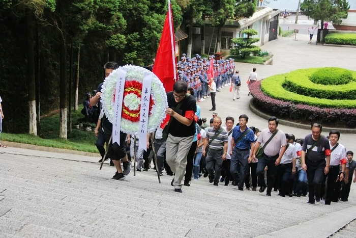 学员在井冈山革命烈士陵园为井冈英烈敬献花圈