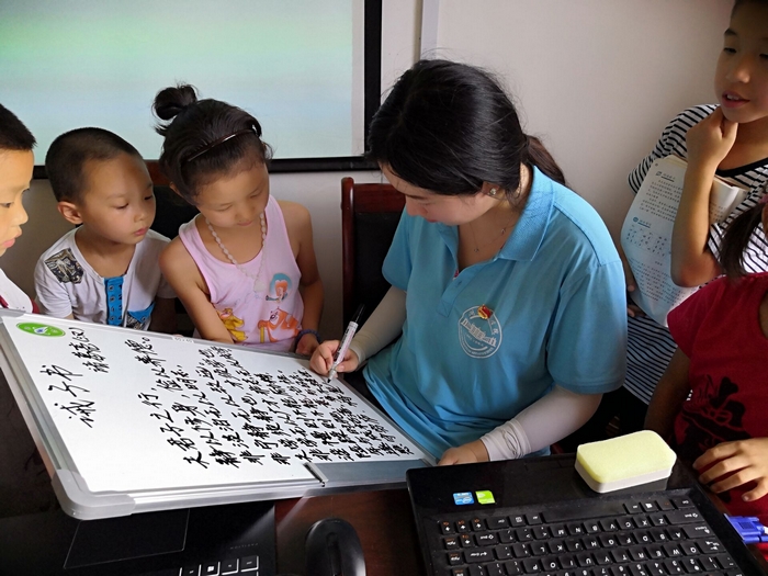 志愿者耐心讲解《诫子书》 肖雅歆摄
