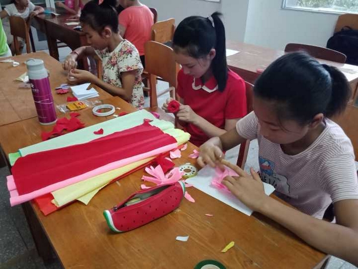 孩子们聚精会神上折纸课 肖雅歆摄