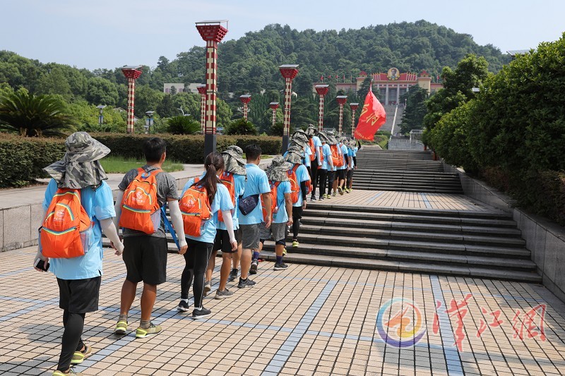 这是由湖北文理学院美术学院3名老师和15名学生组成的暑期社会实践活动——从襄阳徒步迈向井冈山。他们给此次活动取名为:“不忘初心、牢记使命——走向井冈山”。