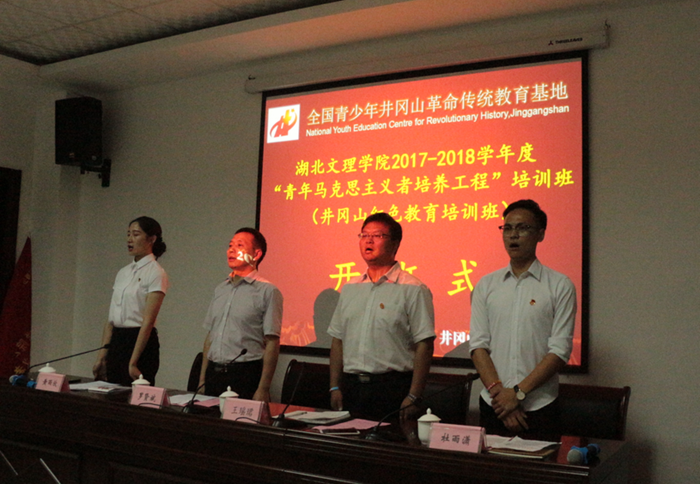 (校团委 通讯员 徐小浩 黄飞鸿 赵国臻)7月21日晚,我校2017—2018学年度“青年马克思主义者培养工程”培训班之井冈山红色教育培训班开班式在全国青少年井冈山革命传统教育基地举行。100名培训学员参与开班式。