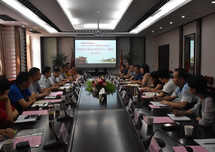 (政法学院 通讯员 何晓红)7月3号下午,乡村振兴与基层治理研究中心(樊城)成立仪式在致远楼三号会议室举行。我校副校长汪云、樊城区委常委、组织部长宋海鹏及双方相关部门负责人及研究中心主要成员参加仪式,成立仪式由科技处处长吴钊主持。