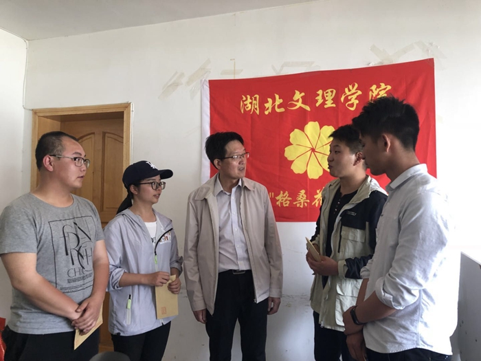 刘伦钊(中)在支教队员宿舍与支教队员亲切交谈 聂军摄