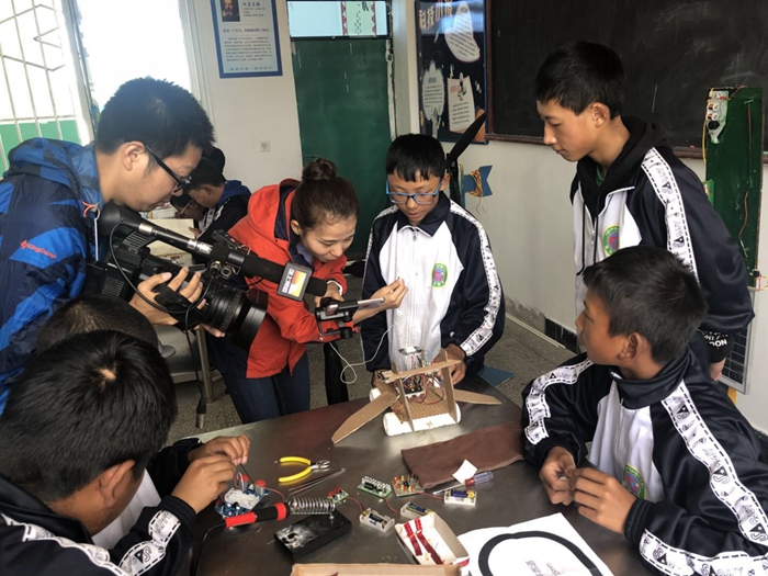 垄上频道对支教队员肖泽龙指导的科创活动进行直播报道 聂军摄