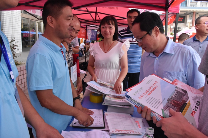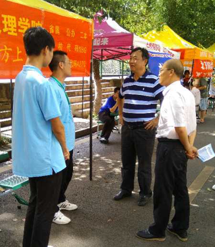 王为一在襄阳职业技术学院宣传点看望工作人员