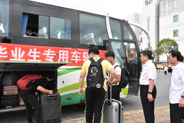 丁世学(右二)为毕业生送行 钟凯龙摄