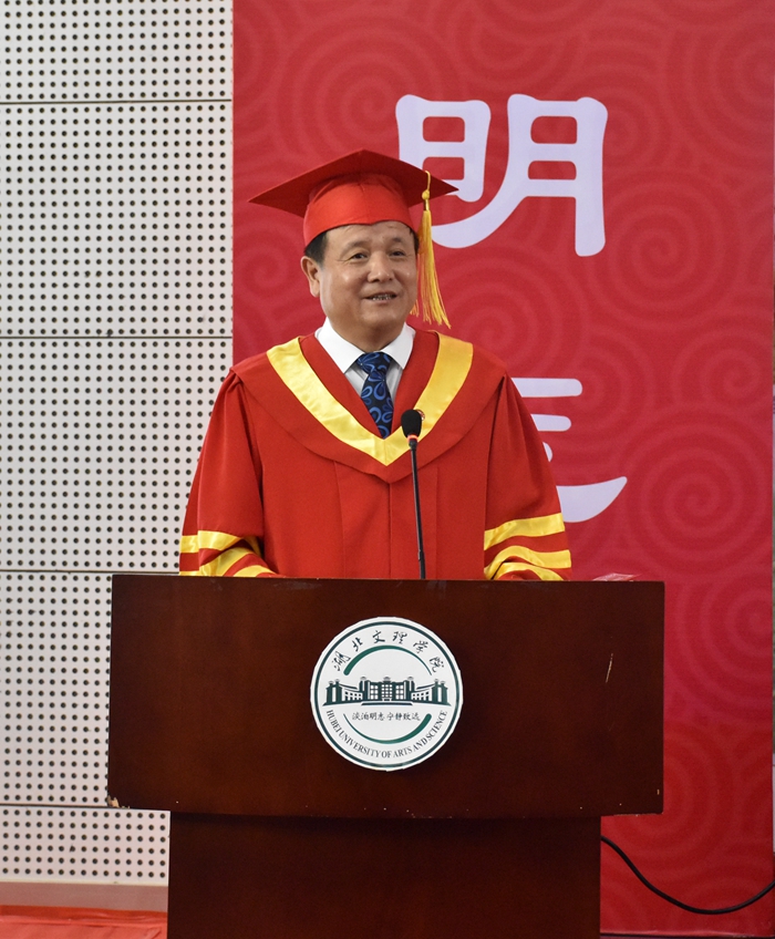 丁世学指出,湖北文理学院每一位2018届毕业生都很精彩,每一位毕业生都有一些故事令人动容。大家付出的每一滴汗水、取得的每一点进步,标注的都是湖北文理学院的铭牌,定义的都是湖北文理学院的高度,续写的是湖北文理学院的荣光!你们带给学校太多的荣誉和骄傲,带给我们太多的感动与自豪!让我们为自己尽情喝彩!