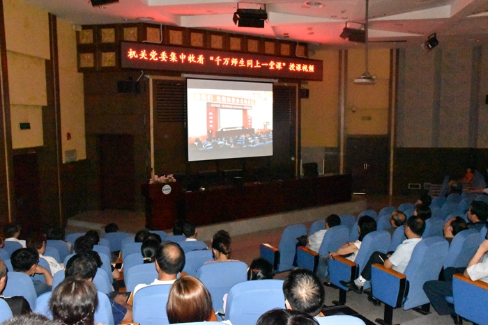 (宣传部 教工通讯员 卜润慧)为深入学习贯彻习近平新时代中国特色社会主义思想特别是习近平总书记关于教育的重要论述,推动“学习新思想千万师生同上一堂课活动”实现全校师生全覆盖,6月14日下午,学校各分党委、直属党总支(支部)组织教职工集中收看党委书记唐峻在“学习新思想千万师生同上一堂课活动”中作的《坚持立德树人 培养时代新人》授课视频。