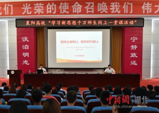 中新网湖北新闻6月12日电 (胡旭)6月11日,襄阳高校“学习新思想千万师生同上一堂课活动”在湖北文理学院举行。湖北文理学院党委书记唐峻、马克思主义学院院长王奎现场授课。活动由湖北文理学院校长丁世学主持。
