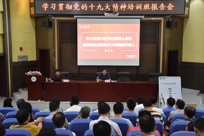 谢守成从全面把握新时代高校立德树人的根本任务、认真落实把立德树人融入教育教学全过程的新要求等两个方面对全国高校思想政治工作会议精神和党的十九大精神进行了深入的解读。