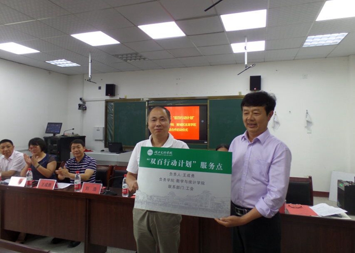 (数学与统计学院 通讯员 耿付荃)6月1日下午,数学与统计学院到“双百行动计划”服务点襄城区法龙学区举行项目合作启动仪式。数学与统计学院党委书记刘浩、院长王成勇、襄城区欧庙镇镇长张栋梁、襄城区教育局继教中心主任郑艳、襄城区法龙学区党总支书记、校长郑思发、襄城区法龙中学党支部书记、副校长袁光宏出席项目合作启动仪式。