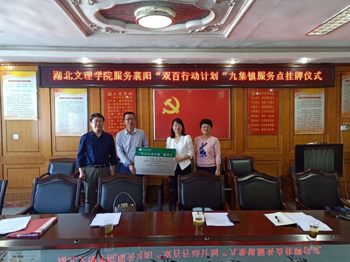 (资环学院 通讯员 邓洁屹)5月12日,副校长汪云、资环学院院长张弢、资环学院党委书记杨霄、科技处副处长秦军荣、相关项目负责人一行到“双百行动计划”服务点南漳县九集镇及其管辖内的八泉村、彭家营村进行调研座谈,并举行了湖北文理学院服务襄阳“双百行动计划”挂牌仪式。九集镇党委宣传委员徐锋、八泉村党支书周万军、彭家营村党支书习义全等参加了座谈。