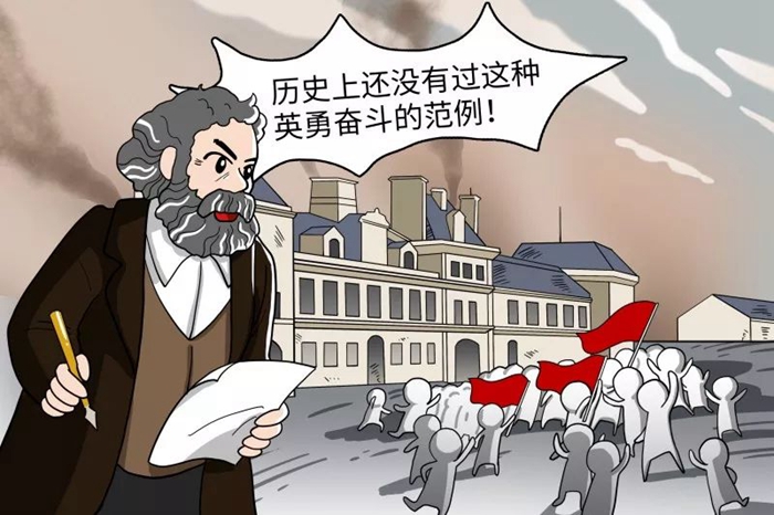 《国际歌》的词作者欧仁?鲍狄埃就是巴黎公社的一名幸存战士,他热情讴歌了巴黎公社战士的崇高理想和英勇不屈的革命精神。马克思曾写过一部经典著作《法兰西内战》,就是总结巴黎公社的经验教训。