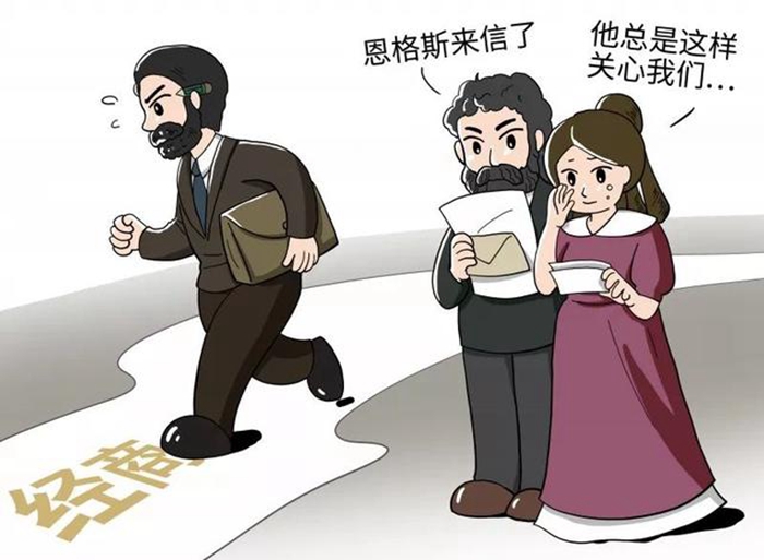 马克思为了搞清楚资本家赚钱的秘密,以让工人看清整个资本主义的发展趋势,专心伏案写作,但经常为家庭的琐碎生活所打乱。恩格斯则自动担负起了马克思的生计问题,可以说,对于马克思一家而言,恩格斯的资助是至关重要的。没有恩格斯数十年如一日的无私援助,马克思终究会被生活的困苦所压倒,他也就不会将他的伟大才能发挥得淋漓尽致。