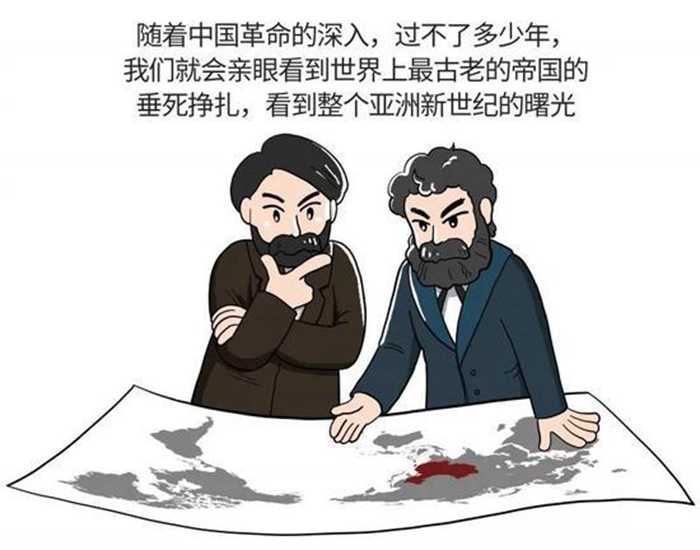 马克思撰写这些报纸文章时,正是太平天国运动席卷中国的时代。马克思对太平天国运动给予很高评价,认为这是“一场惊心动魄的革命”,它不仅会动摇中国的封建专制制度,甚至会引发欧洲大陆的政治革命。马克思说:“中国革命将把火星抛到现今工业体系这个火药装得足而又足的地雷上,把酝酿已久的普遍危机引爆,这个普遍危机一扩展到国外,紧接而来的将是欧洲大陆的政治革命。”