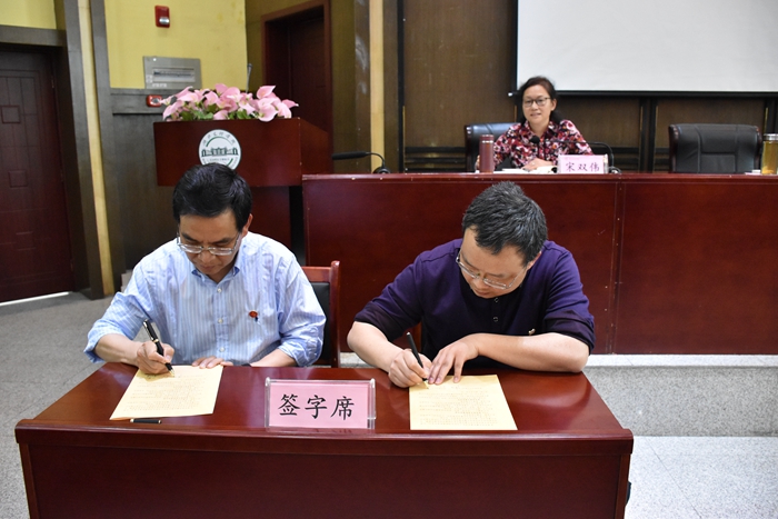 唐峻(左1)与二级党组织负责人代表签订责任书 李平摄