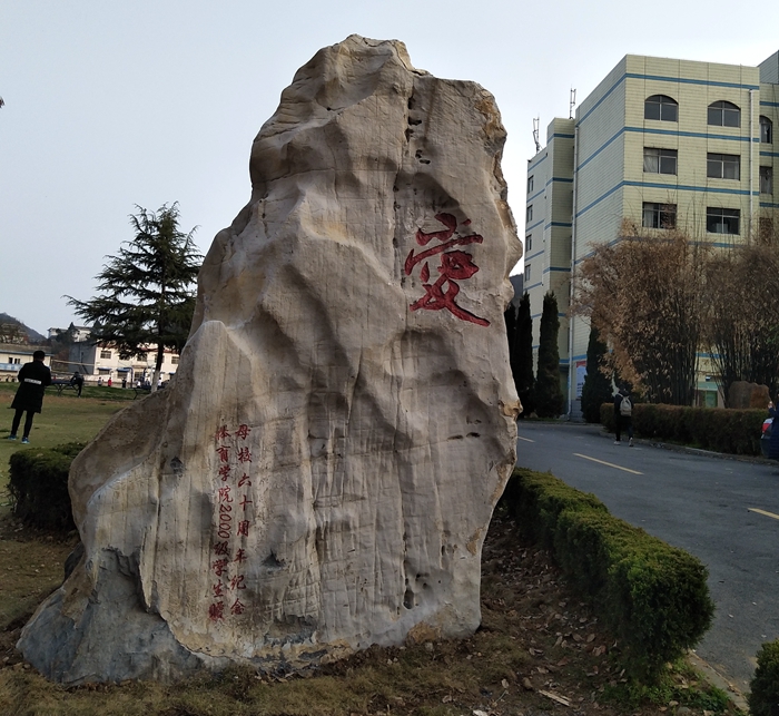 体育教育0011班级班长王超积极联络2000级体育教育专业校友,共同商量在母校60华诞之际向学校捐赠校友纪念石,以表达体育教育2000级全体学生对母校老师们的培育之情。并希望以此作为同学们对青春时光记忆和母校情感的留念。纪念石坐落于北区宿舍区中间,镌刻着“爱”字,不仅代表着湖北文理学院师生和谐有爱的文化氛围,也将激励着一代代湖文学子热爱党、爱祖国、爱学校、爱社会、爱人民、爱师长、爱同学、爱自己做一个充满爱心的人!