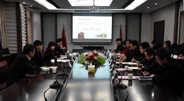 (学校办公室 通讯员 刘仕来)3月5日下午,副市长丁亚琳、市政协副主席、科技局局长罗琼玖、市政府副秘书长宋克定、市教育局局长程敬荣一行来校调研。