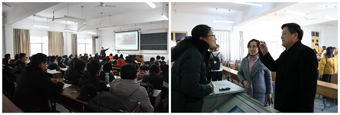 听课过程中,唐峻、丁世学认真记听课笔记;课后,唐峻、丁世学就教学内容、教学方法、教学效果等方面与授课老师进行了交流探讨,并对课堂教学提出意见与建议。