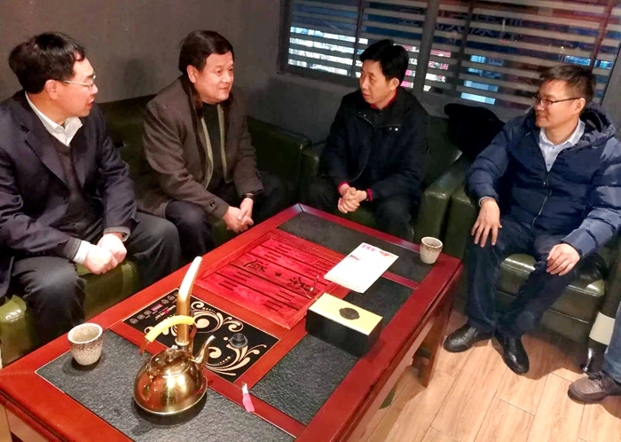 丁世学、王化凯与刘玉新(右二)、王志勇(右一)亲切交谈