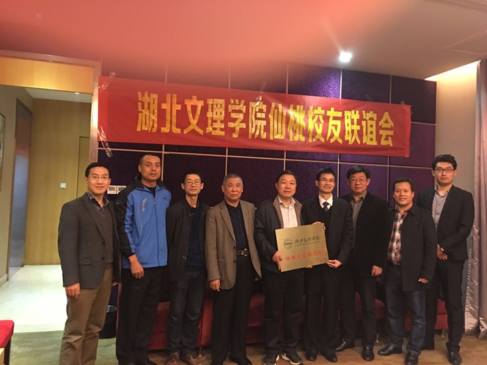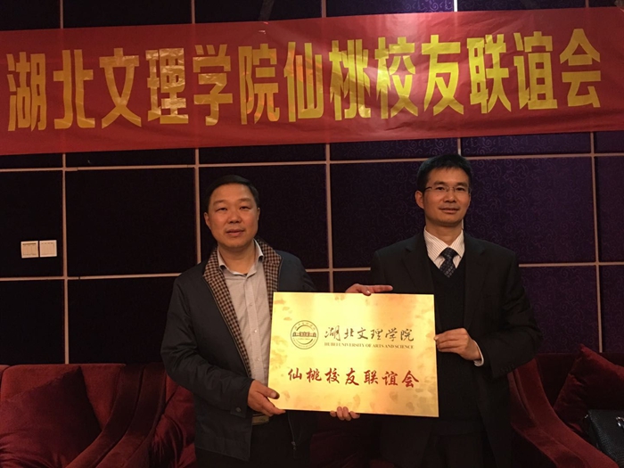 (数计学院 教工通讯员 黄河)10月20日下午,仙桃校友会成立大会在仙桃纽芬兰酒店举行。数计学院党委副书记郑明国、学工办主任黄河、教育学院教师窦刚以及在仙桃校友出席,共同庆祝仙桃校友会成立。成立大会由1998级英语专业刘勇校友主持。