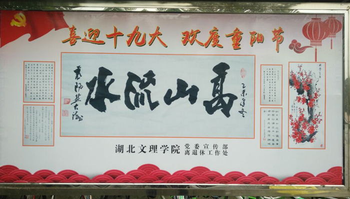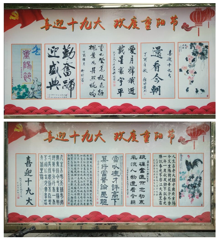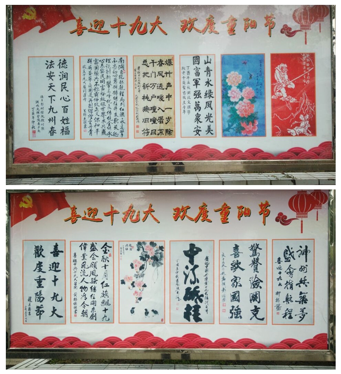 (离退休工作处 教工通讯员 崔玲)近日,学校党委宣传部和离退休工作处组织我校老年书画爱好者,联合举办了“喜迎党的十九大”书画展,书画在N6教学楼前橱窗展出,吸引了大批教师、学生前来参观。