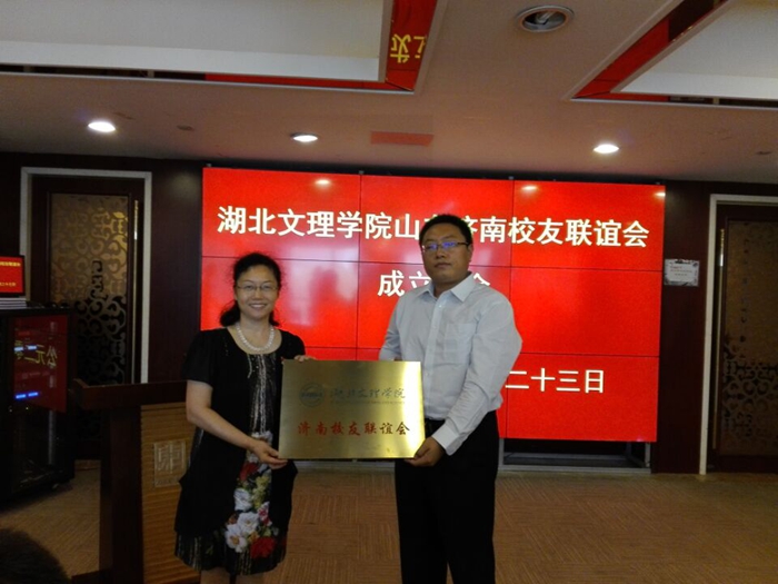 宋双伟(左1)为山东济南校友会授牌 陆茵摄