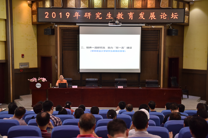 论坛分为两个阶段,第一阶段韩鹤友围绕《写好研究生教育的“奋进之笔”》主题,阐述了研究生教育的重要地位,从抓师德机制建设、抓制度建设、抓好生源质量提升工程、抓培养过程管理、抓创新能力提升工程、抓学术规范和抓好学位点内涵提升工程等七个方面详细介绍了华中农业大学在培养一流研究生、助力“双一流”建设的经验和做法,指出新时代研究生教育需要主动适应“供求关系、国家需求、国家竞争、培养对象和资源条件”等方面的“五大变化”,实现“好学生、好导师、好课程、好课题、好培养、好管理”等“六个好”,满足与“国家政策的对接度、社会需求的符合度、国际前沿的领先度、主体责任的发挥度、研究成果的创新度、人才质量的合格度”等“六个度”,从而写好研究生教育的“奋进之笔”。