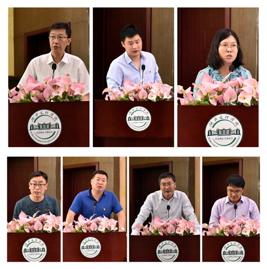 科技处处长吴钊就“如何提升高级别项目和成果奖申报质量”“如何更好地汇聚力量冲击省一流学科””“如何打破院系壁垒构建学校科技创新生态”“如何建立开放服务机制挖掘科研仪器设备潜能”,介绍了科技处的具体举措和工作要求。机械工程学院院长助理刘德政、文学与传媒学院副院长胡小林分别介绍了学院在科技工作上积极谋篇布局做好规划、真抓实干取得实效的成功经验。先进个人代表陈国华、唐明生、朱云海和吴华伟分别介绍他们多年来潜心学问、勇攀高峰、孜孜以求、服务地方的先进事迹。