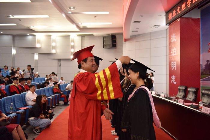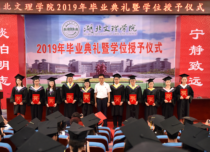 仪式上,纪委书记宋双伟宣读《湖北文理学院关于颁发周文君等3744名学生毕业证书的决定》《湖北文理学院关于授予黄露等3564名学生学士学位和章淑雨等76名学生双学士学位的决定》《关于表彰2019届毕业生先进个人的决定》。校领导为优秀毕业生代表颁发荣誉证书。毕业生代表肖泽龙、在校生代表赵富帅、毕业生家长代表陶慧杰、校友代表高文广、教师代表朱运海分别发言。