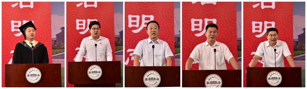 丁世学指出,学校每一位2019届毕业生都是这场毕业盛会的主角。四年来,我们共同努力,获批了硕士学位授予单位,以优异的表现获得了教育部本科教学审核评估专家组一致好评;我们以生为本,不断改善学习生活条件环境,大家对办好学校的无尽期待,是我们追求卓越的不竭动力!今天举行的“毕业礼”,也是“启程礼”,毕业生无论是从政为学还是经商,无论是八街九陌还是基层,我坚信,青春无问东西,奋斗自成芳华,每一条路都会成就传奇。