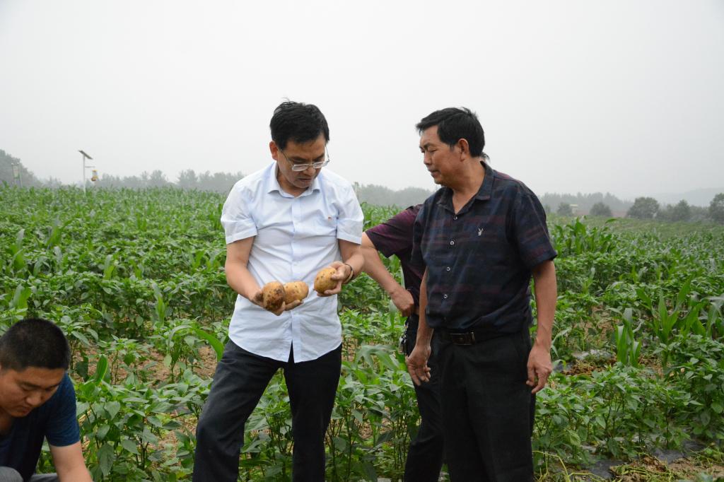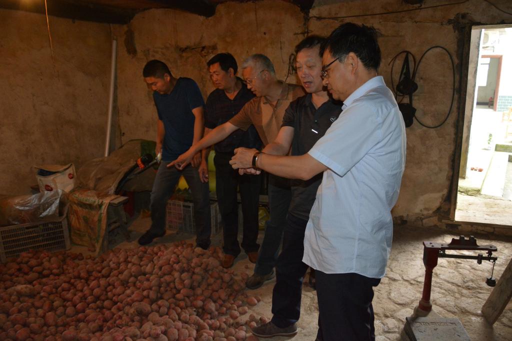 唐峻来到田间地头,察看辣椒、烟叶和土豆生长情况。当看到我校扶贫办从华中农业大学引进种植的新品土豆、听说每亩产量可达6000至9000斤时,唐峻非常高兴。他接过村民手中的铁锹开始挖掘,并将引进种植的土豆和村里原有品种产的土豆放在一起进行认真地比较。唐峻叮嘱驻村工作队员要加大宣传力度和工作力度,改变村民们落后的种植观念,更换产量高、口感好的品种,淘汰产量低、容易生病的落后品种,科学种植、科学施肥,打造高山特色土豆。