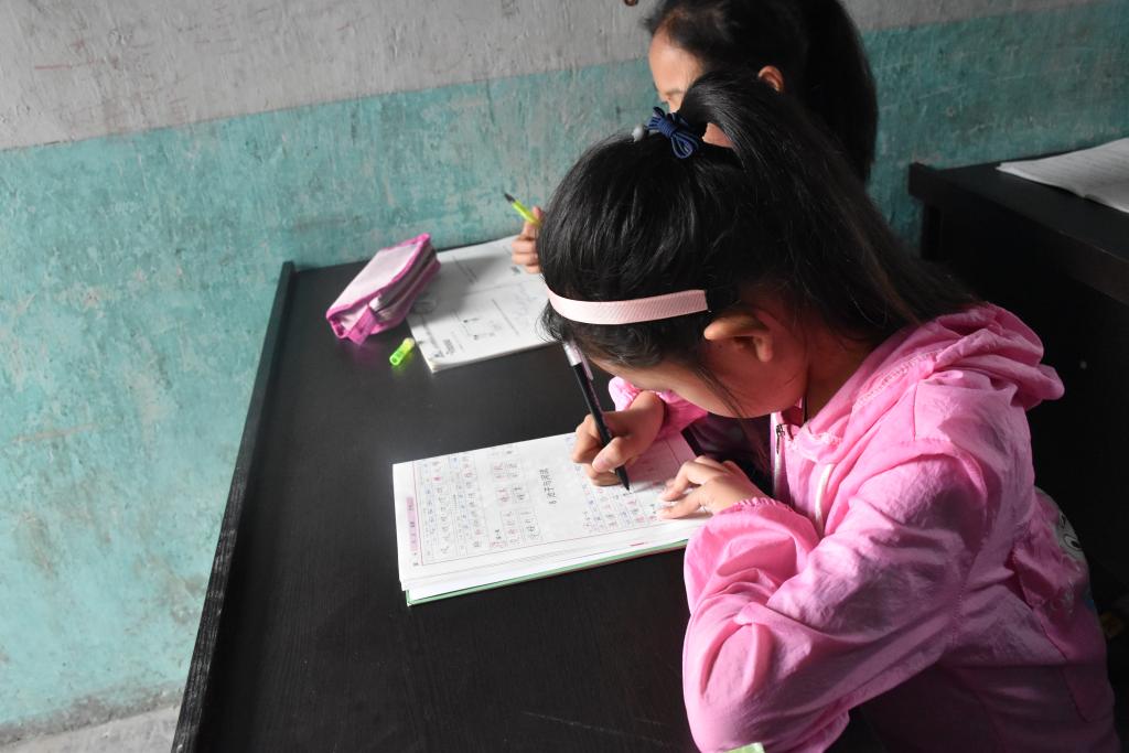 孩子们在辅导中心认真学习
