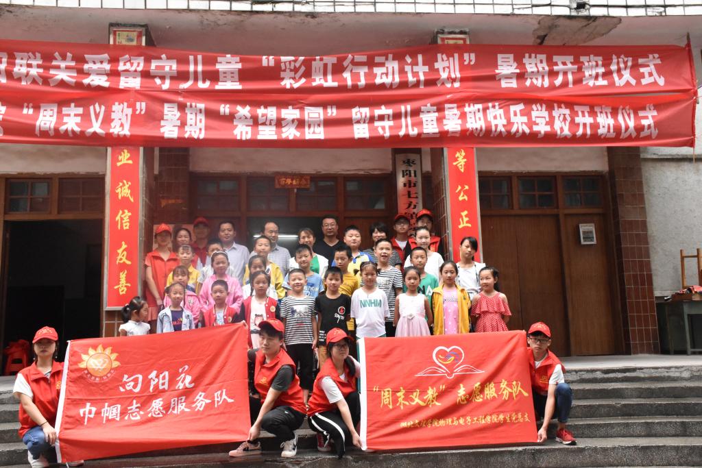 当天上午,“周末义教”志愿服务队举行2019年枣阳市七方镇暑期“希望家园”暨“彩虹行动计划”开班仪式,枣阳市七方镇相关部门负责人、留守儿童爱心辅导中心校长孙国萍参加开班仪式。