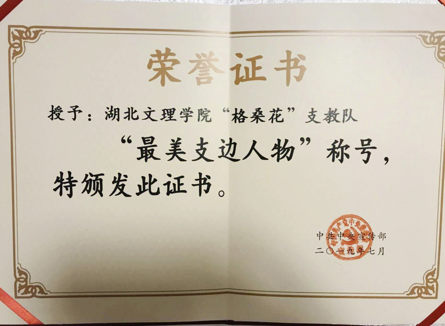据悉,中宣部共授予20名个人和1个集体“最美支边人物”称号,并向全社会公开宣传发布这些援藏援疆援青干部和支边模范人物的的先进事迹。其中我校“格桑花”赴藏支教团队是今年被中宣部授予“最美支边人物”称号中唯一的集体。