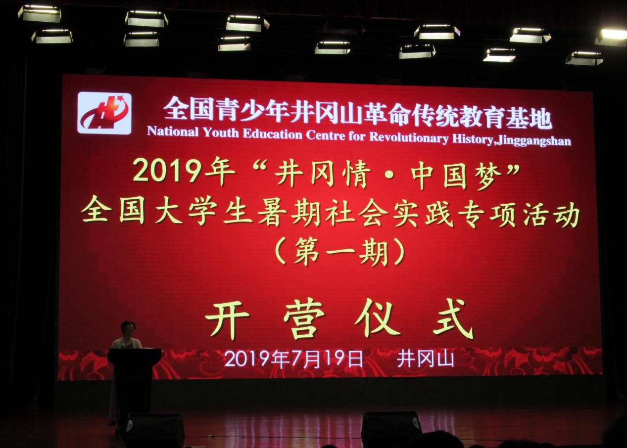 (美术学院 通讯员 秦文杰)7月19日上午,2019年“井冈情·中国梦”全国大学生暑期社会实践专项活动开营仪式在全国青少年井冈山革命传统教育基地综合楼一楼报告厅举行,包括我校美术学院社会实践团队在内的来自国内十九所高校、共计229名学员参加此次开营仪式。