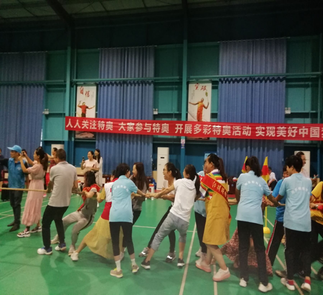 实践团队的志愿者们与旭东路社区阳光家园残疾人一起参加了趣味运动会,志愿者们引导残疾学员分别进行了融合拔河、趣味乒乓球、扔沙包、袋鼠跳、篮球绕杆接力等特奥融合运动项目,志愿者们耐心地给他们讲解规则、示范演练,让他们熟悉赛程。在乒乓球比赛中,志愿者协助运动员在限定时间内用球拍把乒乓球运输到对面,最后以运送的乒乓球数量多少来决定胜负。比赛过程中,志愿者们小心谨慎的保护着残疾学员,避免发生摔倒或碰伤撞伤等意外。运动员在志愿者们的帮助下,顺利完成了各个运动项目,感受到了运动的欢乐,收获了胜利后的自信。