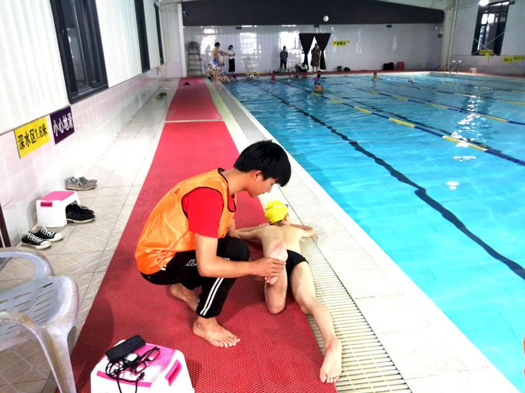 之后,志愿者们在岸边或者进入水中协同生员维护现场秩序,及时制止泳道中逆游、长时间压水线、岸边疯打嬉闹等情况,一一指出其危害性。