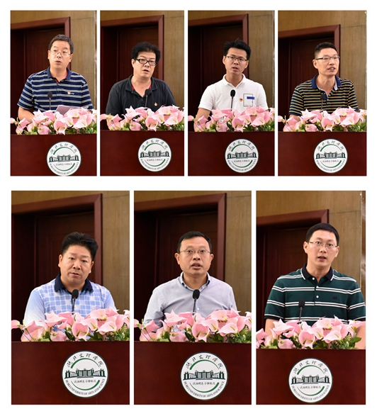 詹玉刚、蔡伟、胡若飞、李业学、张银波、张彦林、陈家平(从左到右)交流发言