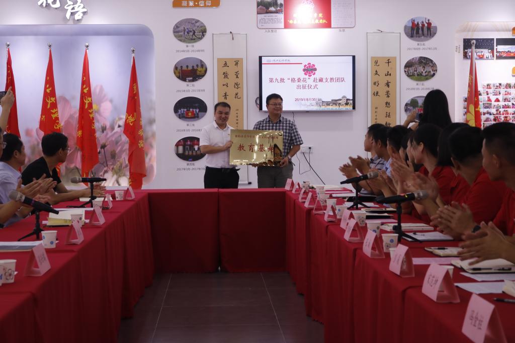 刘路对即将出征的第九批“格桑花”赴藏支教队员提出了三点希望:服从管理,搞好团结互助,爱护身体注意安全。