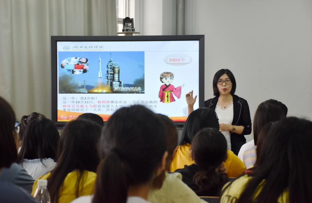 在讲到青藏铁路全线通车、精准扶贫的时候,结合暑期参加井冈山革命理想信念教育的所见所闻,物电学院罗倩倩副教授向同学们讲述了革命战争年代老区人民为我们今天的幸福生活做出的巨大奉献和牺牲,我们要坚定理想信念,为实现中国梦担负起我们的使命。在讲到神舟五号飞船首次进入太空、“嫦娥一号”探月工程、“‘蛟龙’号入海等一系列重大科技成就时,罗倩倩结合即将学习的《通信原理》课程,勉励同学们把握当下,努力学好专业知识,坚定理想信念,做好人生规划,努力成长为建设祖国的重要力量!