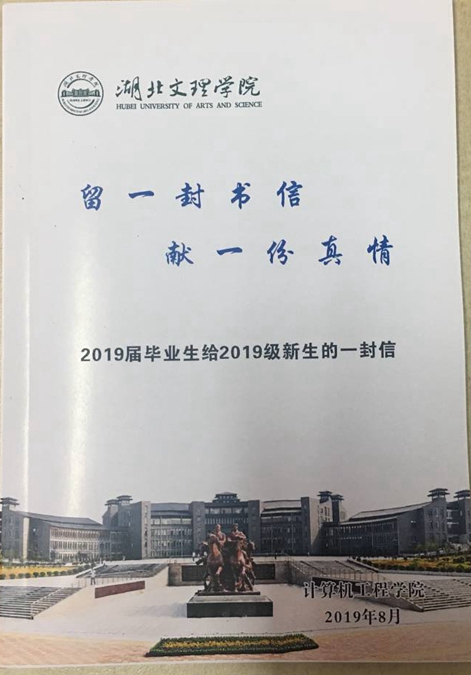 2019届毕业生与2019级新生,他们在湖北文理学院的距离是四年,他们素昧平生,却如同交往多年的挚友。今年五月,在毕业离校之际,2019届的毕业生将他们关于学业的经验、关于未来的规划、关于大学最真切的体悟汇成一封封情真意切的书信,告诉新生,大学应该怎么度过。软件工程1511班代倩写到:“梦想从学习开始,未来靠本领成就,真才实干才是你立足于社会的根基,作为一名大学生,你必须具备自主学习的能力、探索未知的能力。”