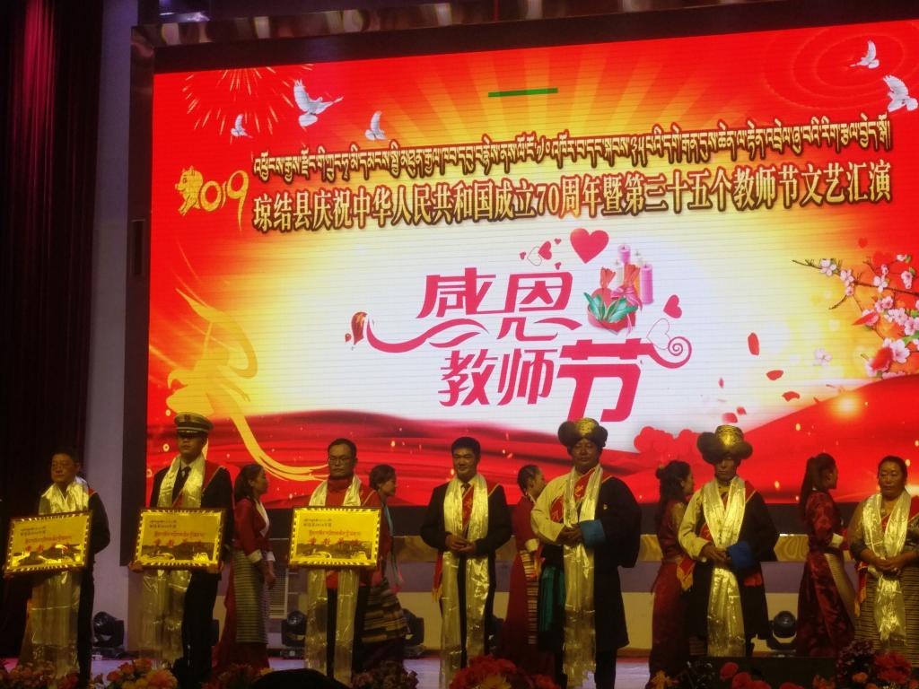 (校团委 通讯员 李宇 何渝琦)“怀揣着中国当代大学生的使命与担当,离开舒适的校园,来到千里之外的雪域高原,挥洒汗水与智慧,用青春谱写梦想,他们是当之无愧的优秀青年!”9月9日下午,琼结县庆祝中华人民共和国成立70周年暨第三十五个教师节文艺汇演在该县礼堂举行,我校“格桑花”赴藏支教团队被琼结县委县政府授予“重教单位”荣誉称号。
