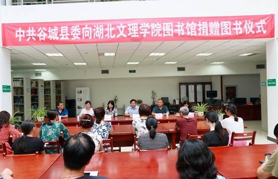 (图书馆 通讯员 刘立冬)9月10日下午,中共谷城县委向湖北文理学院捐赠图书仪式在图书馆举行,副校长汪云,谷城县委常委、办公室主任张成武,图书馆相关部门工作人员参加捐书仪式。仪式由图书馆总支书记樊孝菊主持。