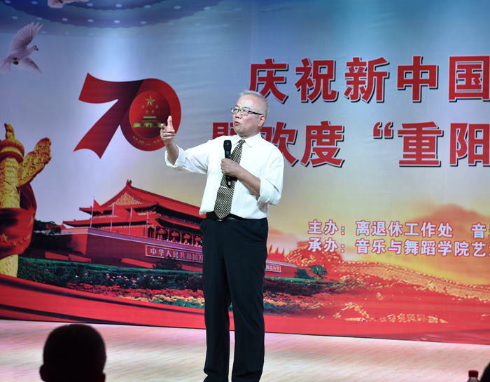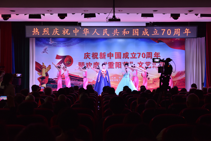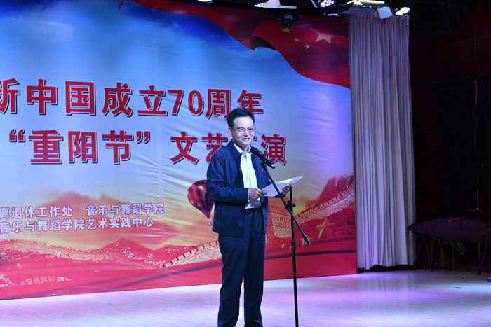 (离退休工作处 通讯员 崔玲)动人的旋律,唱响盛世颂歌;蹁跹的舞蹈,赞美幸福生活。9月19日下午,学校庆祝新中国成立70周年暨重阳节文艺汇演在音乐与舞蹈学院多功能厅举行。党委书记唐峻、副校长刘伦钊出席活动,相关职能部门、二级学院负责人参加活动。