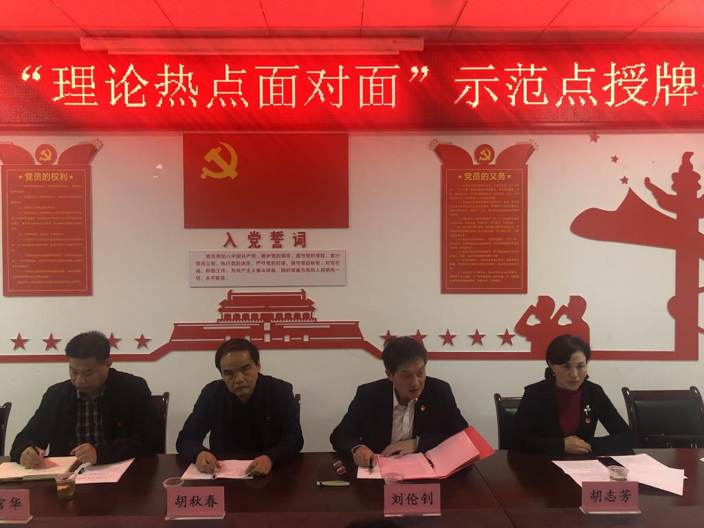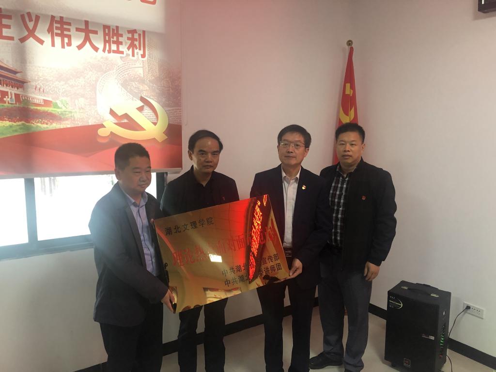 (宣传部 通讯员 卜润慧)10月9日下午,我校“理论热点面对面”示范点授牌仪式在保康县过渡湾镇罗家坪村党员群众服务中心举行。省委讲师团一级调研员胡秋春、四级调研员姚官华,市委宣传部副部长袁晓宁出席会议,保康县委宣传部常务副部长都正阳、副部长王承鼎,保康县过渡湾镇党委书记褚应康,我校副校长刘伦钊、党委宣传部常务副部长聂军、马克思主义学院院长王奎,过渡湾镇党员群众代表等参加授牌仪式。仪式由保康县委常委、宣传部长胡志芳主持。