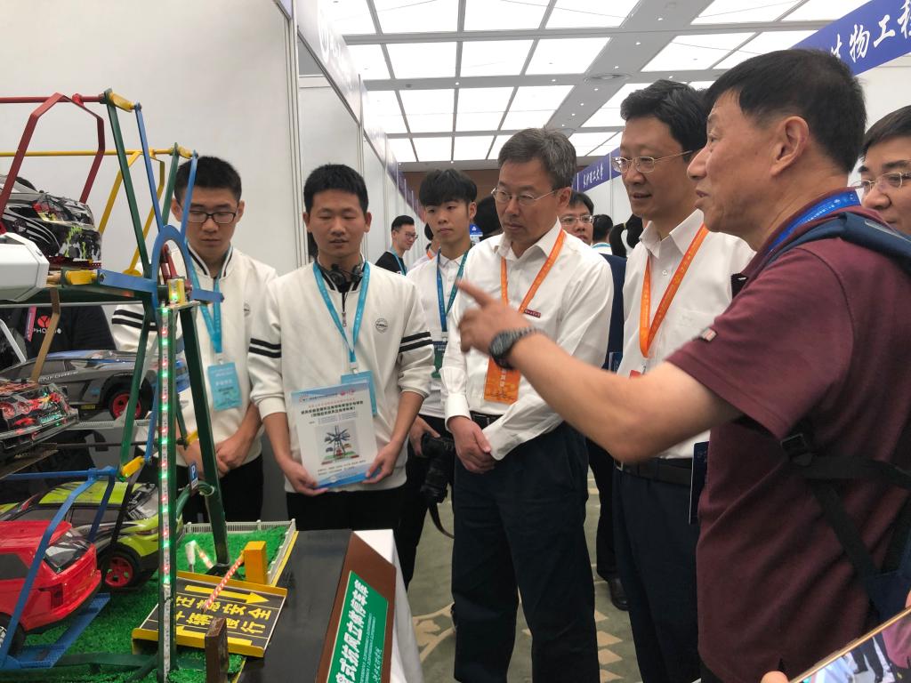 教育部高等教育司副司长徐青森(右二)观看作品演示
