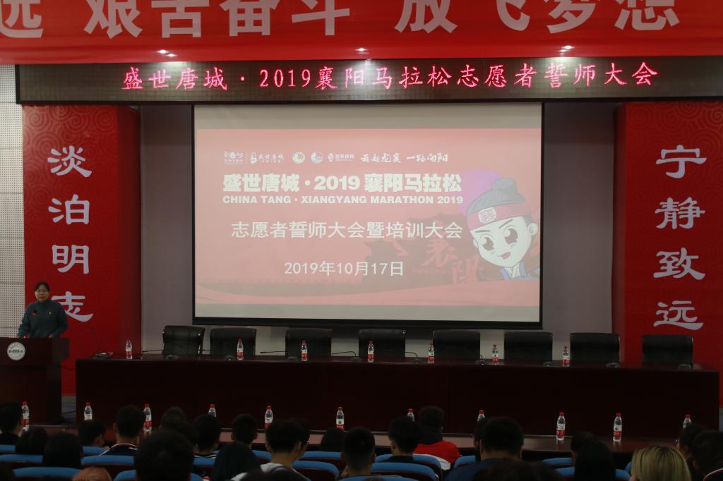 (校团委 通讯员 李宇 王颖)10月17日下午,盛世唐城·2019襄阳马拉松志愿者誓师大会暨岗前培训在我校举行。团市委副书记程威、智美体育集团志愿者工作部负责人、我校600余名襄马志愿者和带队老师参加活动。活动由校团委副书记龚丽丽主持。
