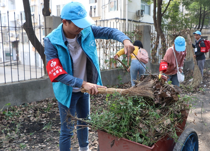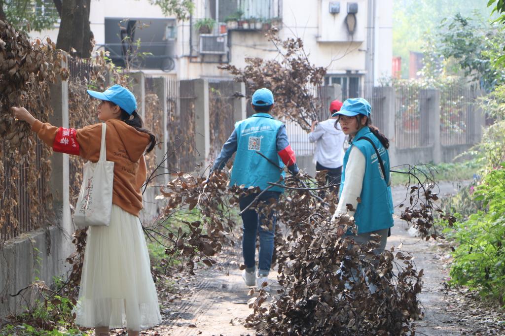 看着干劲十足的志愿者,张公祠社区的工作人员说:”湖北文理学院的志愿者真是不错,干得非常漂亮,感谢你们对六化建小区环境建设所做出的贡献。”(图片由裴欣洁摄)